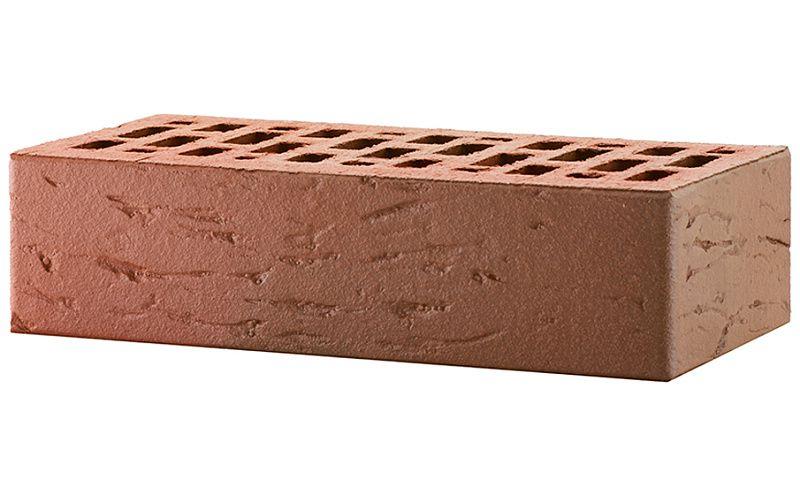 Кирпич облицовочный ЛСР красный флэшинг рустик, утолщенные стенки, 250х120х65 мм